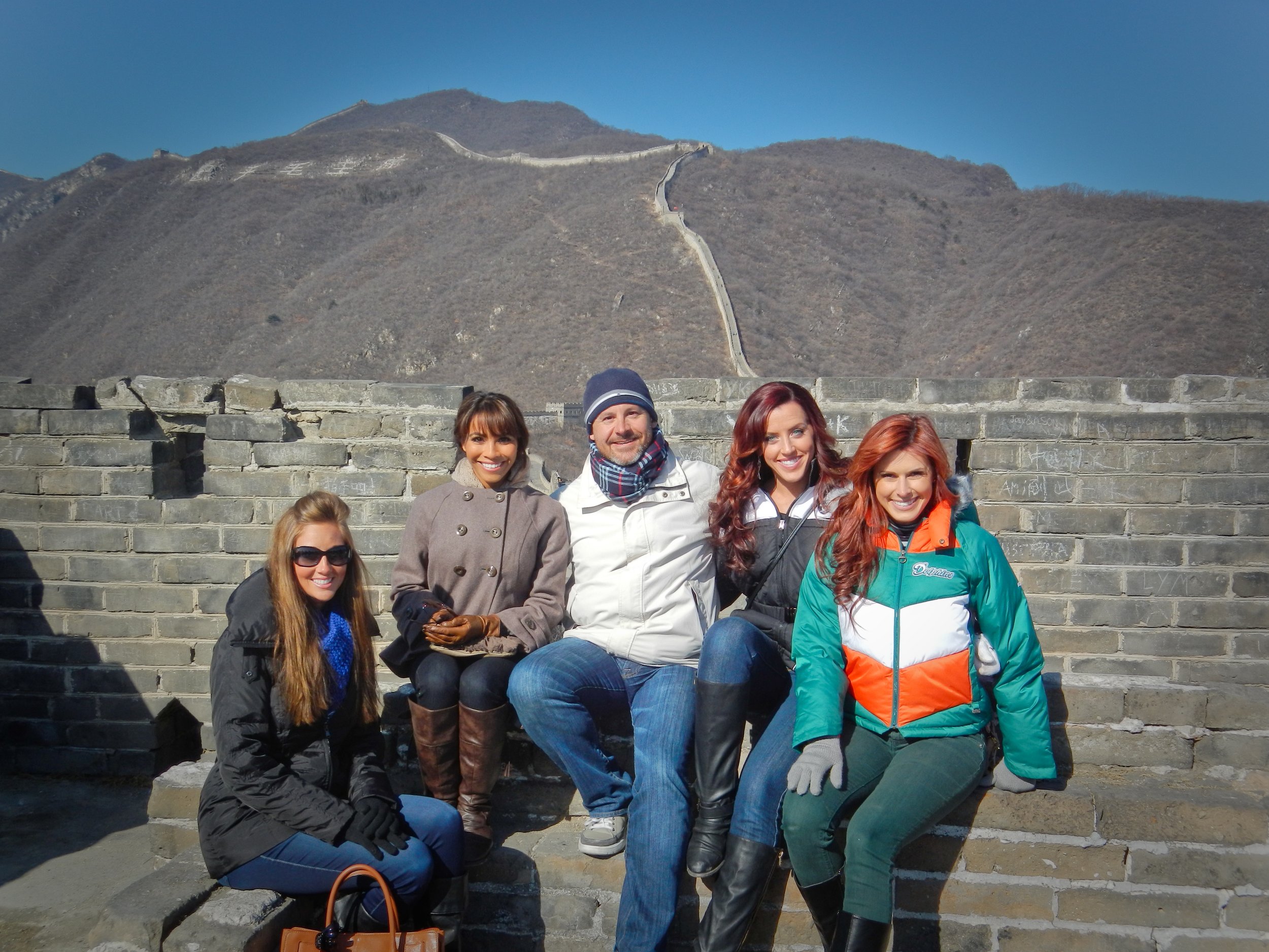 Trip Highlights: Performing at 6:30 AM on a Monday for an NFL China Super Bowl party with Pro Bowl teammates—Amy (Miami Dolphins), Breanna (Indianapolis Colts), Kelly (Oakland Raiders)—and NFL players Reggie Bush, Akin Ayodele, and Jack Brewer. Plus the unforgettable Great Wall of Mutianyu. Truly once-in-a-lifetime. -